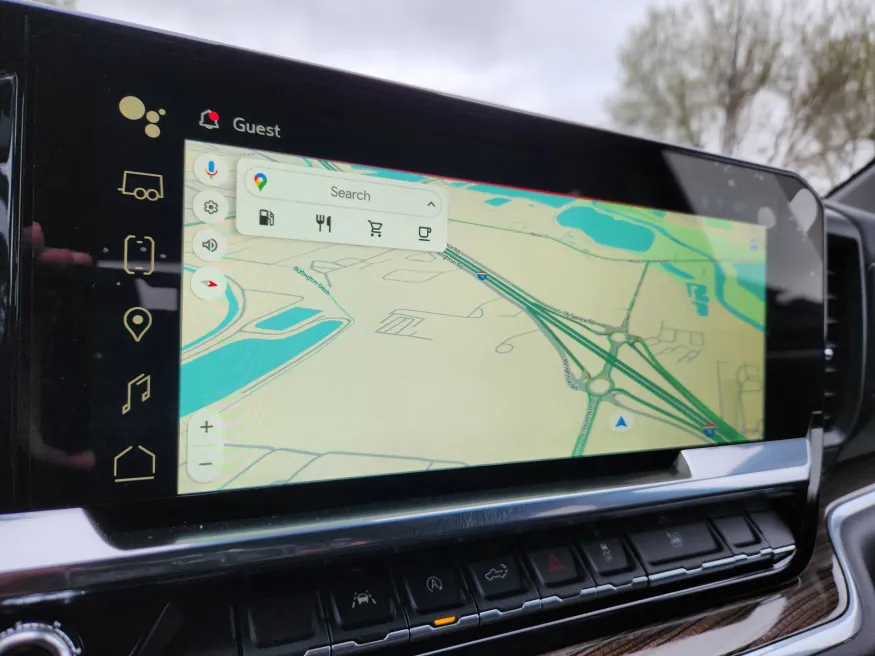 • A man reaches toward his car's infotainment system