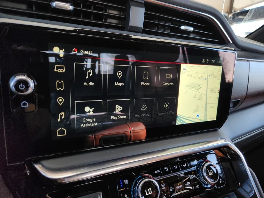 • A man reaches toward his car's infotainment system