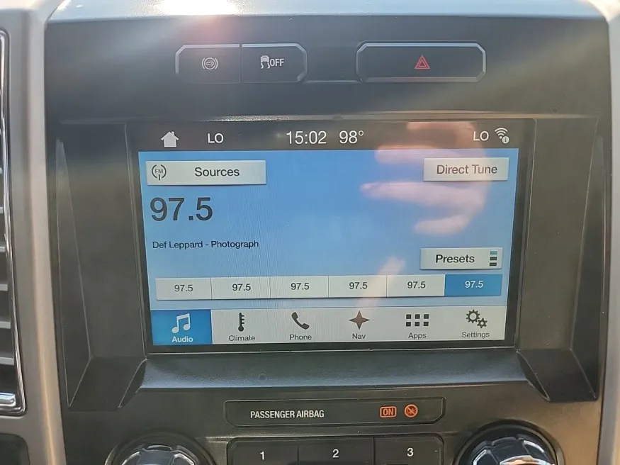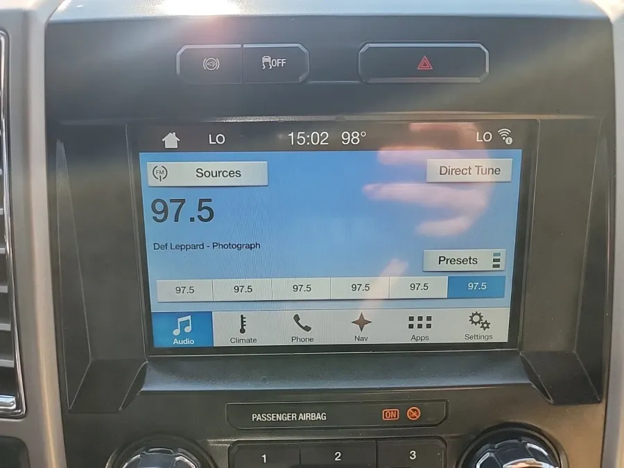 • A man reaches toward his car's infotainment system