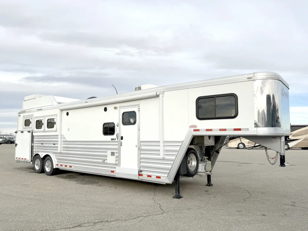 Our horse trailers come in different pull styles and sizes, new to used, to fit every budget. The affordable bumper pull trailer is convenient and easy to tow without the need for special equipment. If you're looking for a spacious option with exceptional towing capability, the sturdy gooseneck horse trailer may be a perfect choice. The living quarters trailer is ideal for anyone who is looking for a comfortable home away from home, and it can save you expensive hotel costs on the road. Non-living quarters horse trailers have more space inside for gear, dressing areas, and storage space. They're perfect for quick trips and offer a convenient way to transport your horse.