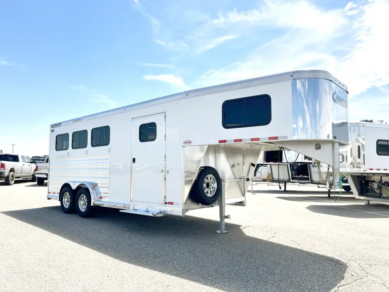 Our horse trailers come in different pull styles and sizes, new to used, to fit every budget. The affordable bumper pull trailer is convenient and easy to tow without the need for special equipment. If you're looking for a spacious option with exceptional towing capability, the sturdy gooseneck horse trailer may be a perfect choice. The living quarters trailer is ideal for anyone who is looking for a comfortable home away from home, and it can save you expensive hotel costs on the road. Non-living quarters horse trailers have more space inside for gear, dressing areas, and storage space. They're perfect for quick trips and offer a convenient way to transport your horse.