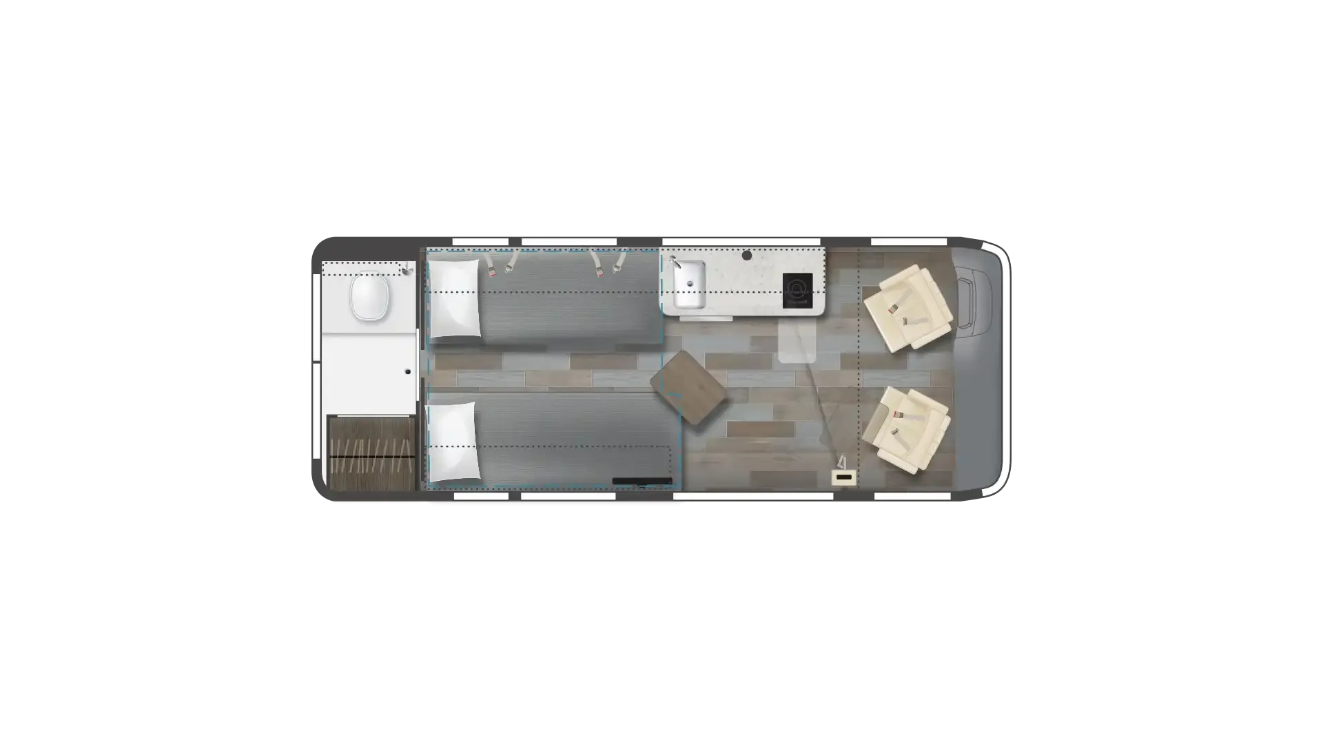 The Winnebago Travato Class B RV is available in four floor plans, each built on the Ram ProMaster® chassis. Of these four floor plans, two feature two twin beds and two feature full-size Murphy beds.