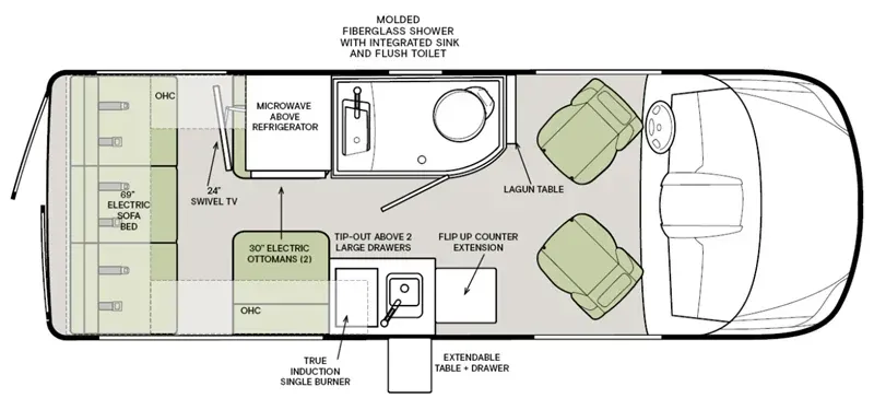The Tiffin GT1 may be compact, but it doesn’t cut corners on craftsmanship. Hardwood cabinetry finished with high-pressure laminate gives the interior a high-end look. Add in power shades and a custom fiberglass body, and you have a Tiffin RV so well-crafted it'll make you stop in your tracks.