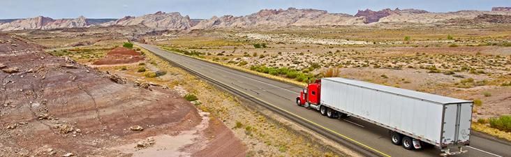 Front of a truck driving on a highway